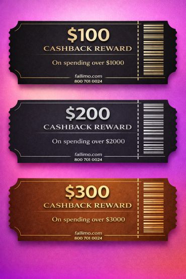 To make your experience even more rewarding, Fallimo Party Bus offers exclusive cashback deals ranging from $100 to $300. These cashback offers are our way of saying thank you for choosing us, ensuring that you get even more value from our top-notch services.
